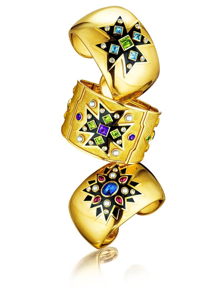 At the helm of Verdura, Landrigan and his son, Nico, have remained true to the design vision of the brand’s founder. All of the jewelry is directly inspired by Verdura’s original creations. The Maltese cross cuffs and curb link bracelets first worn by Chanel and Garbo continue to be sought after today. Other iconic creations that have stood the test of time are the Day and Night Collection, Target and Stardust collections.